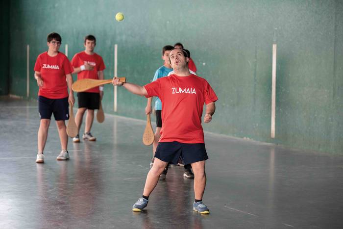 Zumaiako Herri Eskolako pilotalekura hurbildu bezain pronto suma zitekeen giro ona. Zumaiako Kirol Elkarteko pala egokituko kideek denboraldiko azken entrenamendu saioa zuten ekainaren 6an eta, entrenatzailea heldu bitartean, beraien artean ari ziren jokoan, baita ostegun arratsalde hartan frontoira bertaratu ziren haurrekin ere. Barre artean, jokatzeko eta jolasteko gogoa nabari zen pilotakadak partekatzen zituzten bitartean.