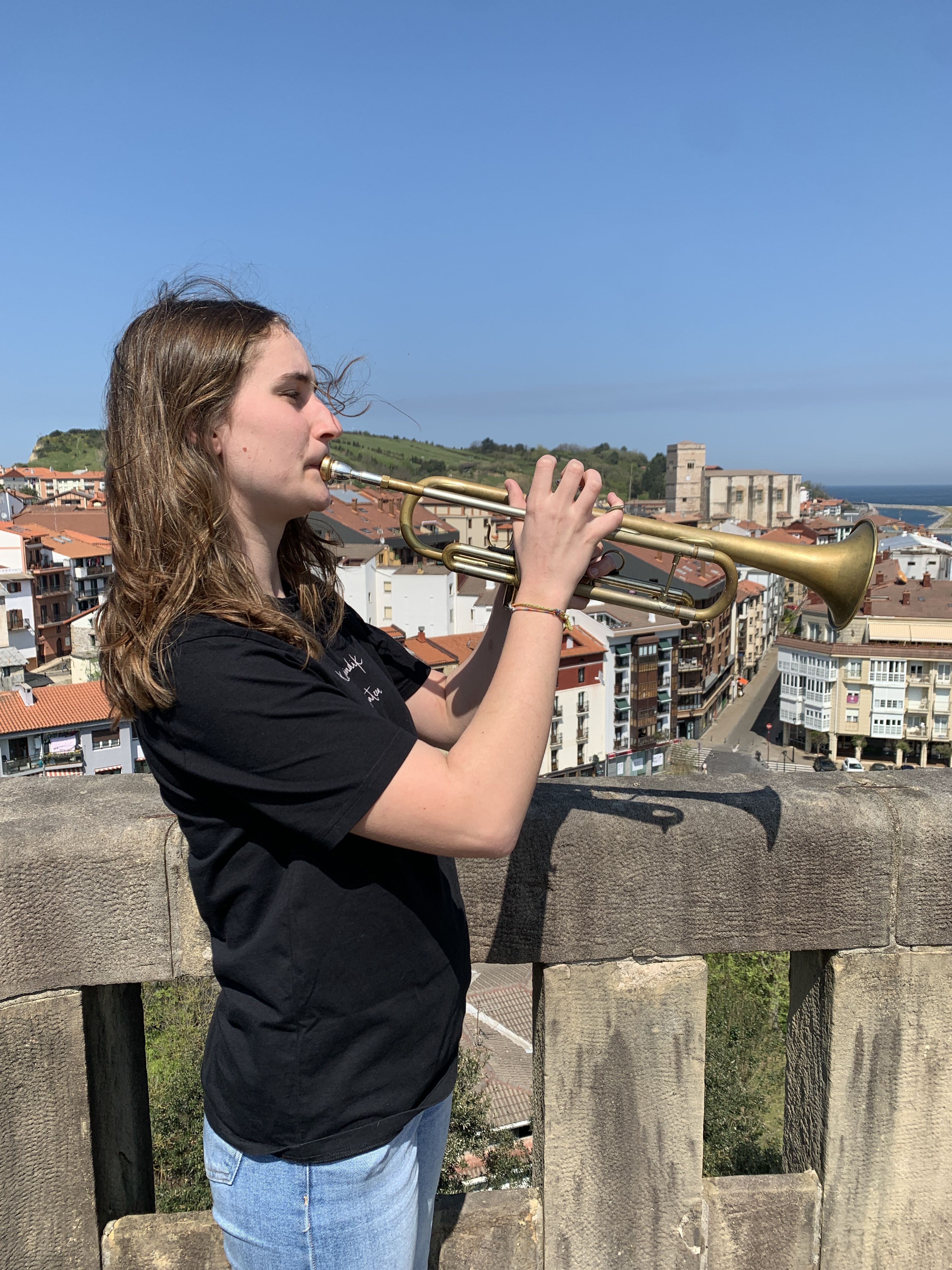 Jendea normalean hasten dena baino bi urte beranduago hasi nintzen, 9 urterekin; ez nintzen lehenago hasi oso lotsatia nintzelako. Erabaki nuen instrumentu bat jotzen ikasi nahi nuela. Pianoa gogoko nuen, baina etxean gurasoekin hitz eginda, trikitixa eta tronpetaren artean dudetan egon nintzen. Aitak esan zidan kalean jotzeko moduko instrumentu bat aukeratzeko, horrek aukera gehiago emango zizkidala eta. Ni baino bi urte gazteagoa den lehengusuak tronpeta ikasi nahi zuela esan zuen, eta nik ere instrumentu bera aukeratu nuen.