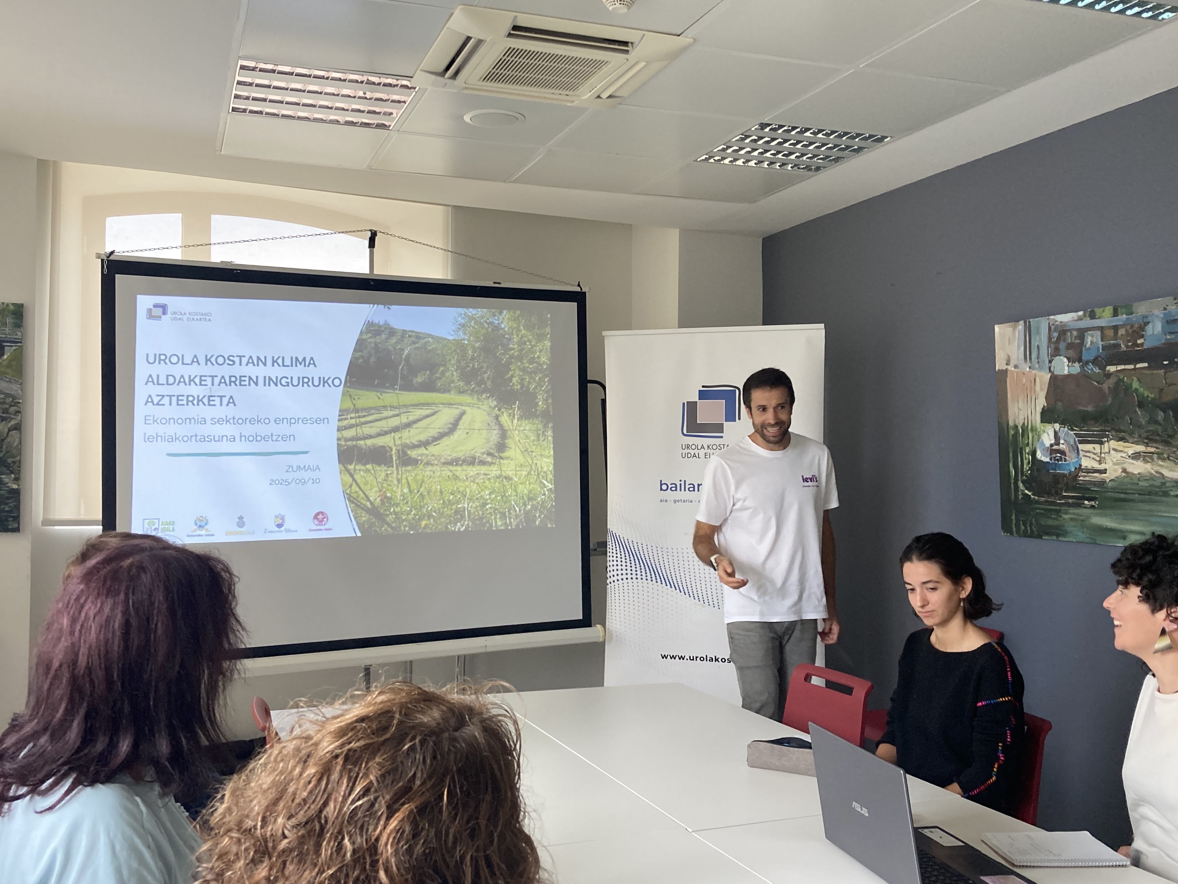 UKUE Urola Kostako Udal Elkarteak klima aldaketak eskualdeko ekonomia sektorean duen eragina aztertu du Isladak ahokularitza zerbitzuaren laguntzarekin. Lau aurkezpen saio antolatu dituzte ondorioak gizarteratu eta eragileen ekarpenak jasotzeko, lehena, Zumaian. Atzo bildu ziren, asteazkena, Alondegiko Moila gelan, eta bertan izan ziren herriko merkatarien ordezkariak nahiz zenbait enpresatako kideak.