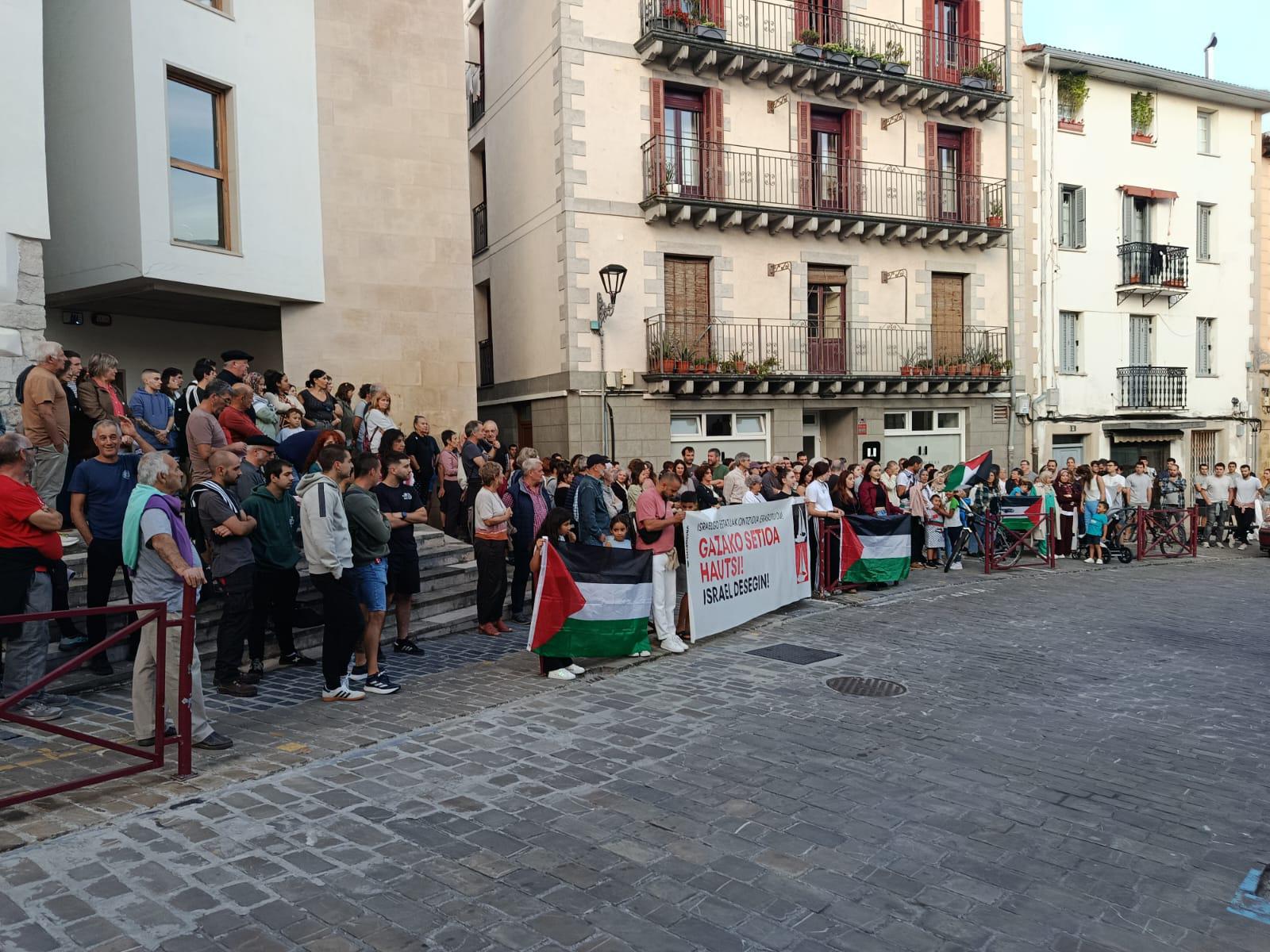 Bart Israelek Gazara heltzear zen Global Sumud flotilla atzeman ostean, Palestinari Elkartasuna plataformak gaur arratsaldean Euskal Herriko plaza edota udaletxe aurre guztietan elkarretaratzera deitu ditu herritarrak, eta zumaiarrek ez dute hutsik egin. Palestinako banderak eskuetan batu dira udaletxe aurrean dozenaka lagun, eta besteak beste, Gazako setioa bukatzeko eta Israel desegiteko eskatu dute.