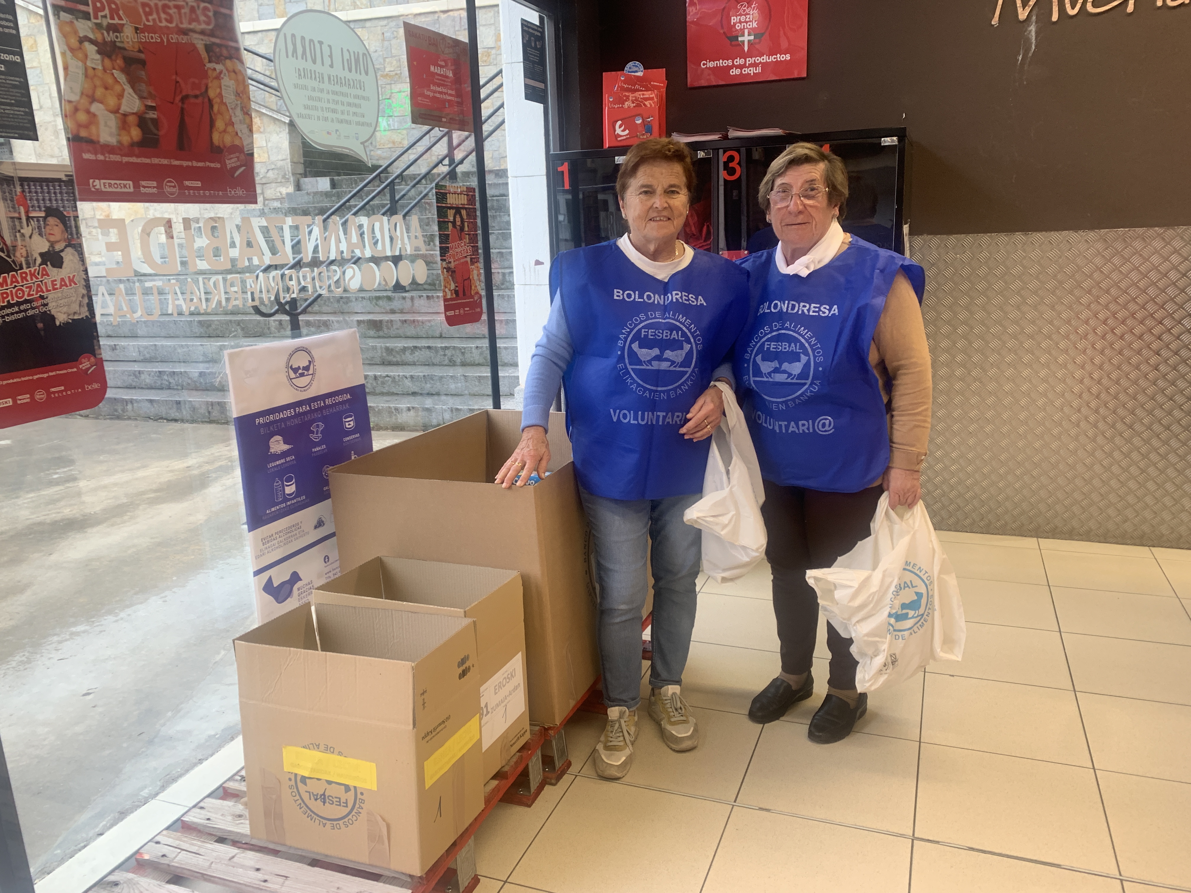 Gipuzkoako Elikagai Bankurako janari bilketa egiten ari dira gaur Zumaian, supermerkatuen ataritan. Ardantzabideko BMn eta Eroskik herrian dituen hiru supermerkatuetan ari dira bilketa egiten boluntarioak. Gaur bezala, bihar ere jasoko dute herritarrek emandako elikagaiak, goizez eta arratsaldez (Foruen plazako Eroskin goizez bakarrik).