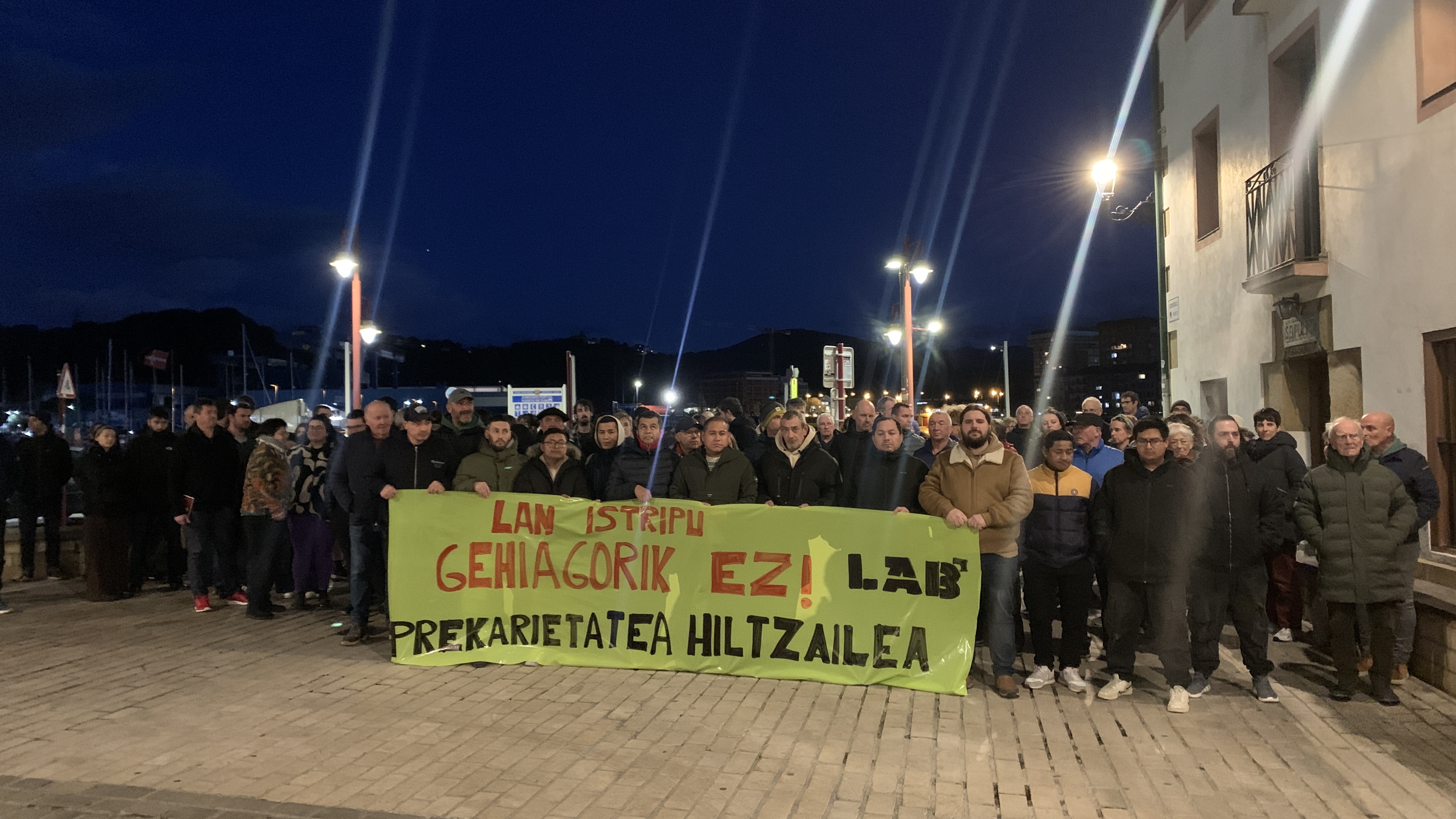 Dozenaka lagun bildu dira gaur iluntzean Saregile plazan, pasa den ostiralean Estaños Matiena enpresan izandako lan heriotza gaitzesteko asmoarekin. 32 urteko behargin bat hil zen urtarrilaren 30ean Zumaiako Joxe Mari Korta industrigunean lan istripu larrian, pieza handi batek kolpatu eta gero.