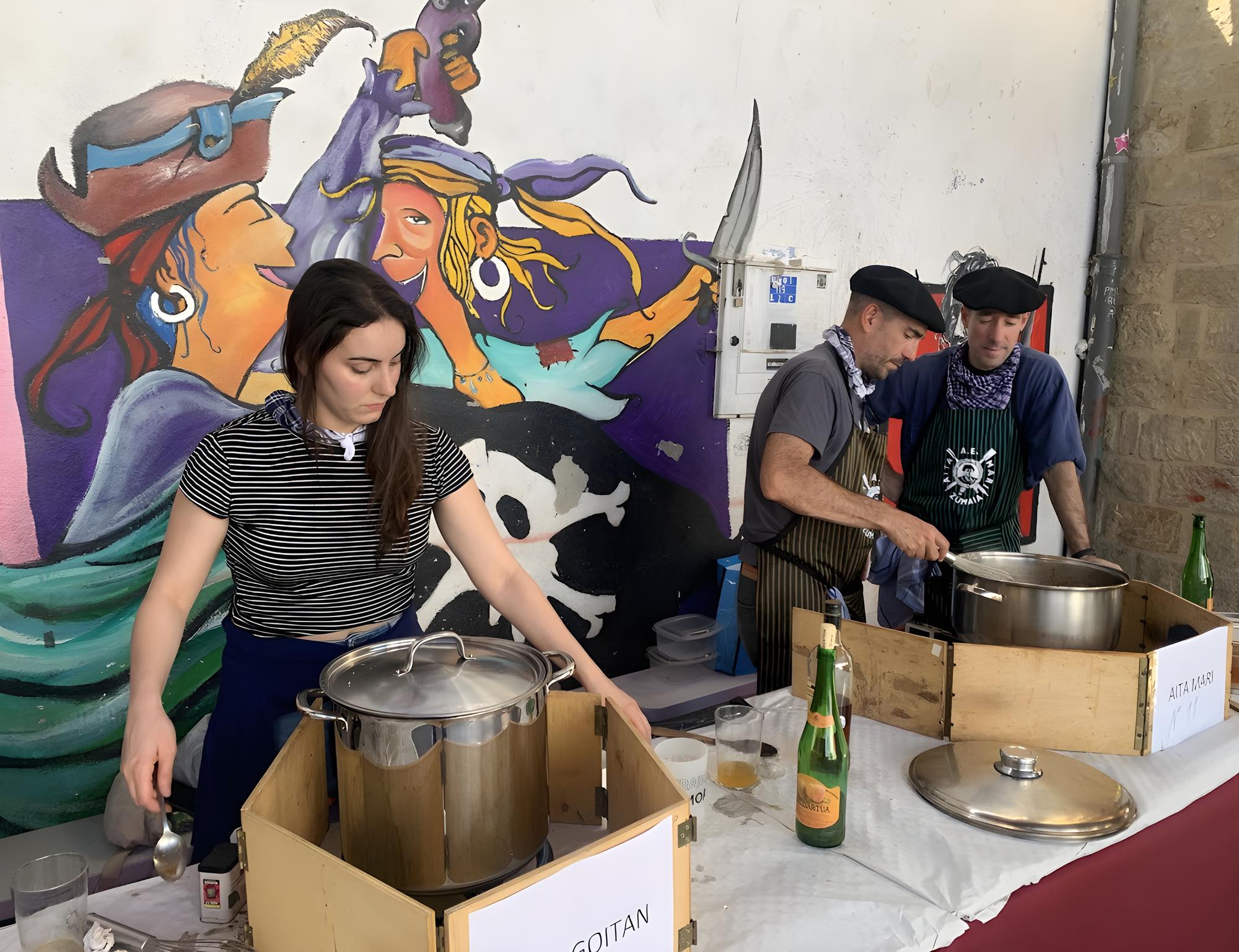 Aita Mari elkartetik beharrezko tresneria hartuta joaten dira Eusebio Gurrutxaga plazara. 10:00etan, lehiaketa hastean, epaimahaiak seinalea egiten die kazolan, eta orduan hasten da sukaldarien benetako lana. Lehiaketaren bueltan giro bikaina sortzen dela nabarmendu du Galarragak: "Parte hartzaile guztien arteko harremana oso ona izaten da. Gainera, hamaiketakoa ematen digute antolatzaileek, eta denok elkarri adarra jotzen aritzen gara. Oso ondo pasatzen dugu".