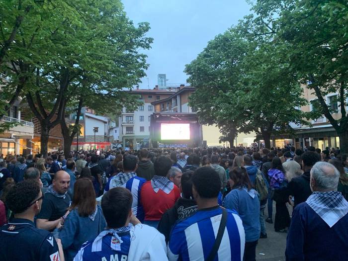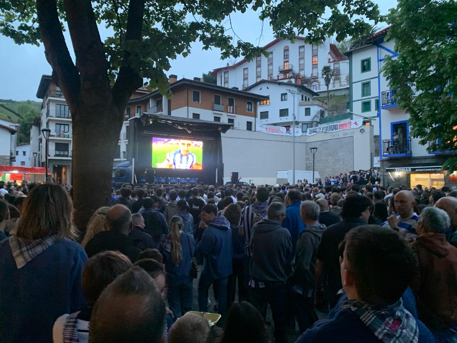 Santelmoetako repetizioen festa giroa aitzaki hartuta, ehundaka zumaiar elkartu ziren atzo gauean Odietan, Espainiko Koparen finala aurrez aurre jarraitzeko. Jaietako zapi eta futboleko kamiseta txuri-urdinak soinean, herriko festak ez ezik, Realaren garaipena ere ospatu zuten giro ezinhobean.