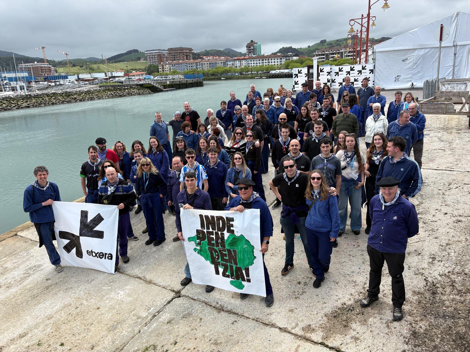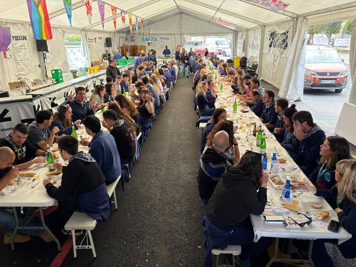 Santelmoetako repetizioetan ere gogoan izan dituzte euskal preso eta iheslariak, eta iaz bezala aurten ere, elkartasuna adierazteko talde argazkia atera zuten atzo arranplan. Ondoren, elkarrekin batera bazkaldu zuten txosnagunean, festari ekin baino lehen.